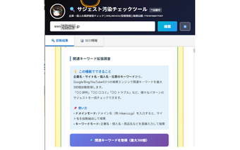 أداة فحص تلوث サジェスト v4.2 هي إضافة لمتصفح Chrome مصممة لمساعدة الشركات في مراقبة وإدارة سمعتها على الإنترنت. تقوم تلقائيًا بالكشف عن الكلمات الرئيسية السلبية من محركات بحث متعددة، بما في ذلك Google وYahoo وBing، وتوفر أدوات لتشخيص شامل لـ DNS وWHOIS وSSL. يمكن للمستخدمين استخراج أسماء الشركات من عناوين المواقع وتجميع نتائج البحث حسب محرك البحث، مما يجعلها أداة أساسية لمتخصصي العلاقات العامة وSEO.